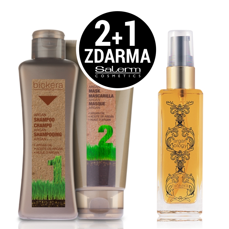 Akce 2+1 Zdarma! K nákupu šampónu Salerm Biokera Argan 300 ml a arganového oleje Biokera Arganology 60 ml nyní zdarma maska na vlasy Biokera Argan 200 ml.