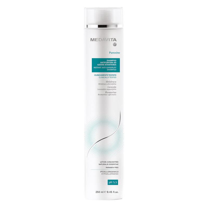 MedaVita Puroxine Instant Anti-Dandruff šampón proti lupům s posílenou účinností pro zdravé vlasy a vlasovou pokožku chráněnou celý den. Šampón okamžitě hloubkově odstraňuje viditelně lupy a předchází jejich další tvorbě. Díky kombinovanému působení Piroctone Olamine a speciálního exfoliačního enzymu, navrací do normálu mikrobiální prostředí a brzdí produkci šupinek. Šampón posiluje obranný systém vlasové pokožky a okamžitě zastavuje svědění a to díky unikátnímu spojení esenciálních olejů.