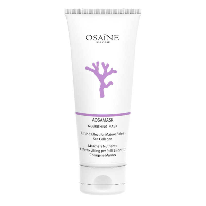 Osaine Aosamask vyživující maska pro zralou pleť (Nourishing Mask/Lifting Effect for Mature Skins/Sea Collagen/Maschera Nutriente/Effetto Lifting per Pelli Esigenti/Collagene Marino) je intenzivní, vyživující a zpevňující maska, pro obličej a krk, vytvořená pro náročnou pleť, která trpí ztrátou pružnosti a hydratace. Obsahuje mořskou vodu a kolagen, mořeské řasy a rostlinné proteiny.