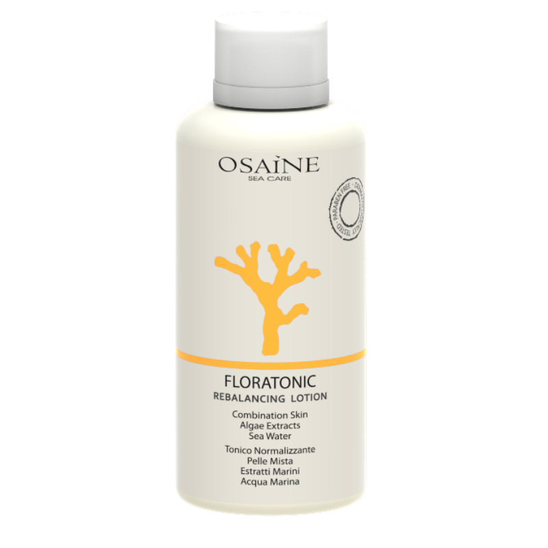 Osaine Floratonic tonikum pro smíšenou pleť (Rebalancing Lotion/Combination Skin/Algae Extract/Sea Water) ze žluté řady Osaine Sea Care Yellow Line zbavuje pleť posledních nečistot, navrací ji ztracenou hydrataci a zamezuje jejímu vysoušení. Regulační složky regulují produkci kožního mazu a zlepšují celkový vzhled pleti. Tonikum pomáhá regulovat pH pleti, lehce stahuje póry a harmonizuje produkci mazu. Vhodné pro normální a smíšenou pleť, kdy střední „T-zóna“ je mastnější a boční oblasti tváře jsou lehce suché a podléhají lehkému pnutí. Vysoká dávka mořské vody z Golfského proudu (Gulf Sea Sream Water) pro dodání minerálních solí a stopových prvků. Řasa Codium tomentosum (Codiavelane) pro hloubkovou hydrataci a zabránění ztráty vody z pleti. Řasa Laminaria saccharina (Phlorogine) reguluje mazovou sekreci a stabilizuje hydrolipidickou rovnováhu pleti.