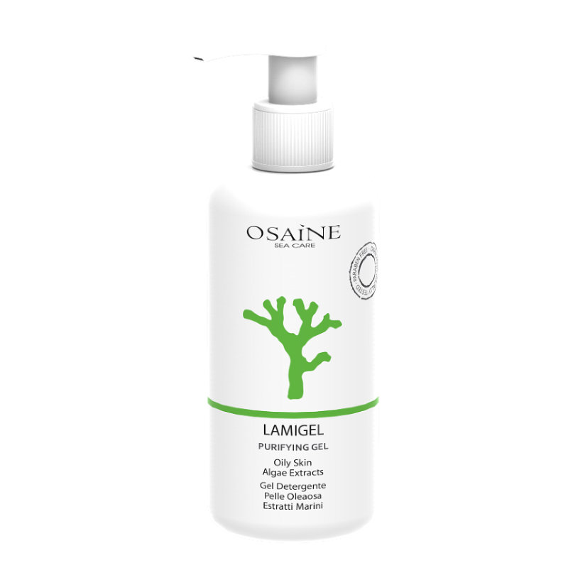 Osaine Lamigel čistící gel pro mastnou pleť (Purifying Gel/Oily Skin/Algae Extract) ze zelené řady Osaine Sea Care Green Line s obsahem mořské vody a mořských řas je určen pro důkladné odstranění odumřelých kožních buněk a minimalizaci nadměrné tvorby kožního mazu. Čistící gel je vhodný pro péči o mastnou a problematickou aknózní pleť. Čistící gel reguluje mazovou sekreci, absorbuje nadbytek mazu, stahuje rozšířené póry, brání bakteriálnímu bujení a tvorbě mastných kyselin. Po použití čisticího gelu Osaine Lamigel bude pleť dokonale vyčištěná, bez ucpaných pórů a výskytu přebytečného mazu. Aktivní složka Laminarghane z mořské řasy čepelatky (Laminaria) snižuje mazovou sekreci a brání tvorbě bakterií.