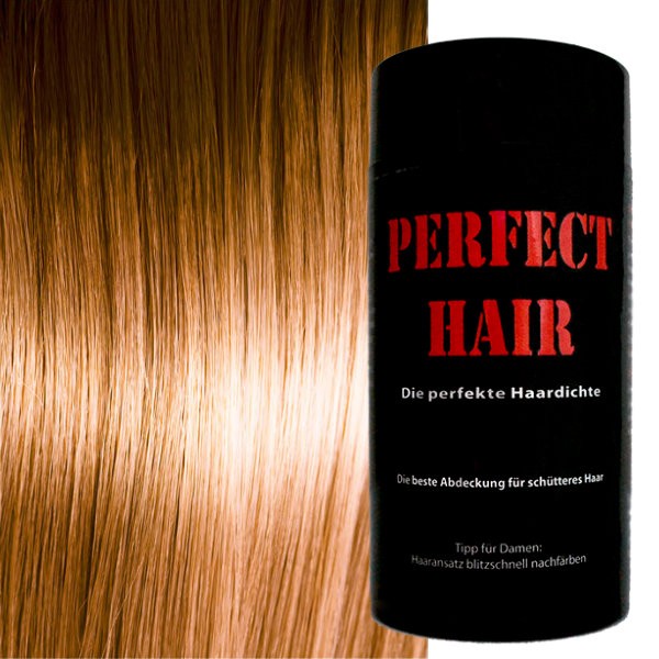 Vlasový objemový pudr Perfect Hair je ideálním pomocníkem v případech řidnutí vlasů a lysin vlasové pokožky. Díky mikro vláknům dokonale přilne k vlasům, které tak opticky zhustí a zakryje prosvitající vlasovou pokožku. Aplikace pudru je velmi jednoduchá a rychlá. Pudr vlasy nebarví, nezatěžuje a na vlasech vydrží i ve špatných povětrnostních podmínkách. Pudr se z vlasů jednoduše odstraňuje během šamponování. Pudr Perfect Hair je možné používat také pro zakrytí odrostu. 28 gramové balení v průměru vystačí na cca 75 aplikací. Záleží na velikosti postižené oblasti.