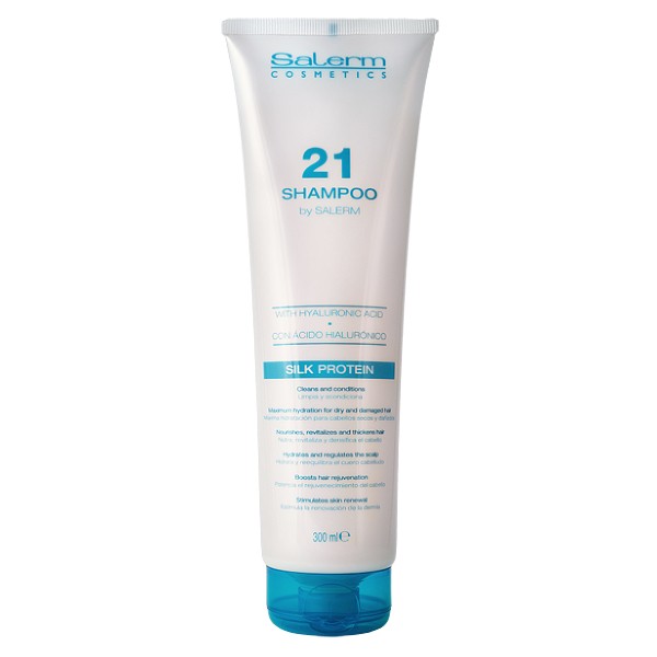 Salerm Šampón Salerm 21 je určen speciálně pro maximální obnovu a hydrataci suchých a poškozených vlasů. Šampón vlasy jemně čistí a zároveň je vyživuje, revitalizuje a posiluje. Aktivní látky obsažené v šampónu Salerm 21 hydratují a normalizují činnost vlasové pokožky. Šampón stimuluje obnovu vlasové pokožky a poskytuje vlasům mladistvý vzhled.