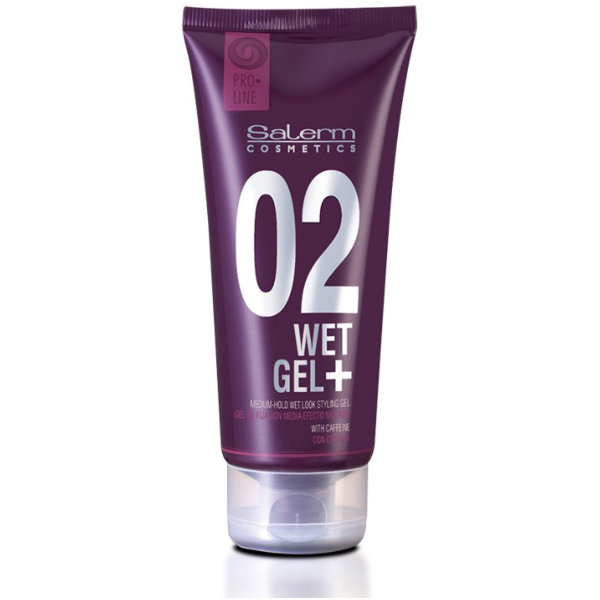 Salerm Pro.Line Wet Gel+ se střední fixací č.02 s mokrým efektem a rychleschnoucím účinkem. S povzbuzujícími a antioxidačními účinky díky obsahu kofeinu. Gel je založen na progresivní fixaci: čím více produktu nanesete, tím silnější fixace dosáhnete. Díky silně táhnoucí se struktuře nabízí Wet Gel+ více flexibility, ochrany a hydratace vlasového vlákna před okolními vlivy. Gel má velmi jemnou, nasládlou parfemaci. Pro extra silnou fixaci doporučujeme Salerm Pro.Line Wet Gel Rock s fixační silou č.04.