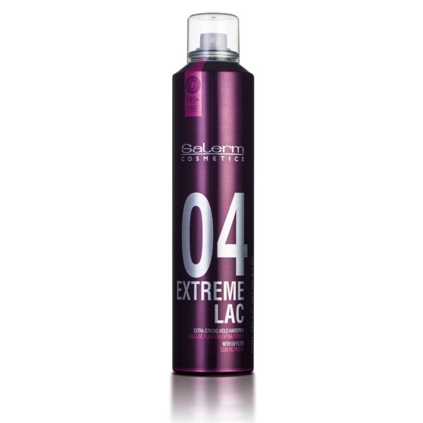 Extra-silný lak Salerm Pro-Line 04 Extreme Lac umožňuje pracovat v libovolné poloze 360°. Lak s extra-silným držením je ideální pro styling, který vyžaduje maximální fixaci s dokonalou konečnou úpravou. Svým složením působí proti externí vlhkosti, dosahuje vynikajících výsledků i u velmi jemných vlasů nachýlných ke krepatění. Díky aktivním solárním filtrům chrání barvu vlasů před slunečními paprsky. Kmenové buňky bavlníku jsou výborné antioxidanty, které zpomalují proces buněčného stárnutí a degradace buněk vlasů.