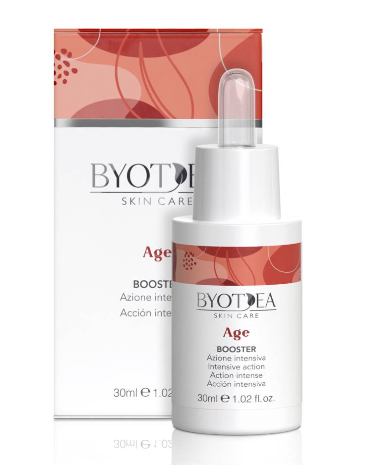 Byotea AGE Booster (Action Intense) s efektem botoxu je účinný pleťový koncentrát bohatý na kyselinu hyaluronovou s vysokou molekulární hmotností. Intenzivní sérum pomáhá redukovat příznaky stárnutí a podporuje správnou hydrataci pleti. Pleť hloubkově vyživuje a zároveň provádí intenzivní lifting. Uvolňuje svalové mikro-kontrakce, viditelně redukuje vrásky včetně těch mimických. Kontroluje působení volných radikálů a činí pokožku viditelně odpočinutou a vyhlazenou. Vyrobeno v Itálii. Neobsahuje parabeny, geneticky modifikované složky, parafín, sulfáty SLS nebo SLES.