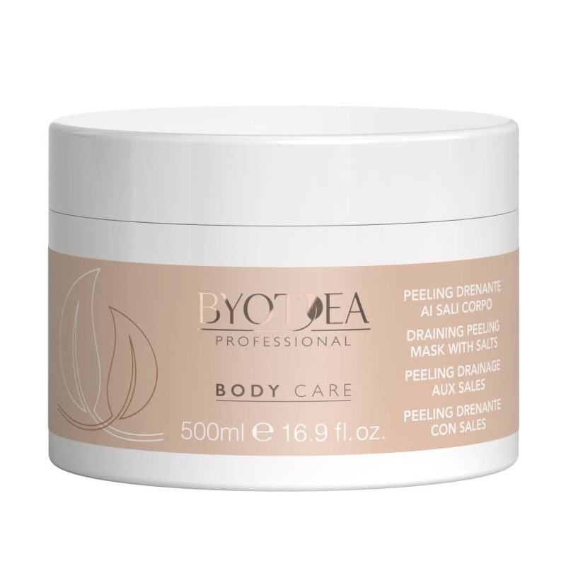 Byotea Body Professional drenážní tělová maska se solí (Draining Peeling Mask with Salts) s himalájskou solí a s mandlovým, sezamovým a olivovým olejem. Peeling čistí pokožku a odstraňuje odumřelé buňky z jejího povrchu, čímž přispívá k regeneraci pokožky a udržení jejího dobrého stavu. Drenážní peelingový krém odstraňuje nečistoty a odumřelé kožní buňky, napomáhá obnově buněk a zanechává pokožku okamžitě hladkou a zářivou. Neobsahuje parabeny, geneticky modifikované složky, parafín, sulfáty SLS nebo SLES.