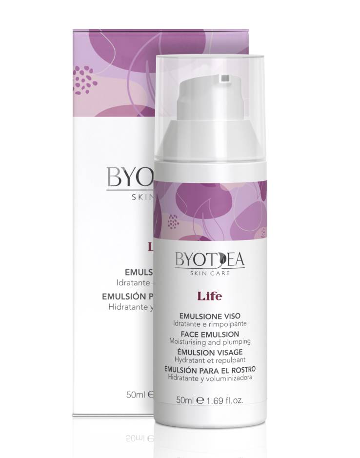 Byotea LIFE je hydratační a vyhlazující řada, založená na vitamínech E a F, přírodních antioxidantech, které pokožku vyživují a podporují obnovu tkání. Pokožka získává zpět svůj komfort a bude tonizovanější, pružnější a chráněná. Vaše pleť je jedinečná a pro zvýraznění její přirozené krásy je důležité rozpoznat její potřeby v každém věku. Pokožka postupem času snižuje schopnost zadržovat vlhkost, stává se citlivější, sušší a křehčí. Sluneční záření, atmosférické a digitální znečištění výrazně snižují přirozenou schopnost pokožky chránit se, což vede ke ztrátě tónu a plnosti, až následně dochází k vzniku jemných vrásek či pigmentových skvrn.