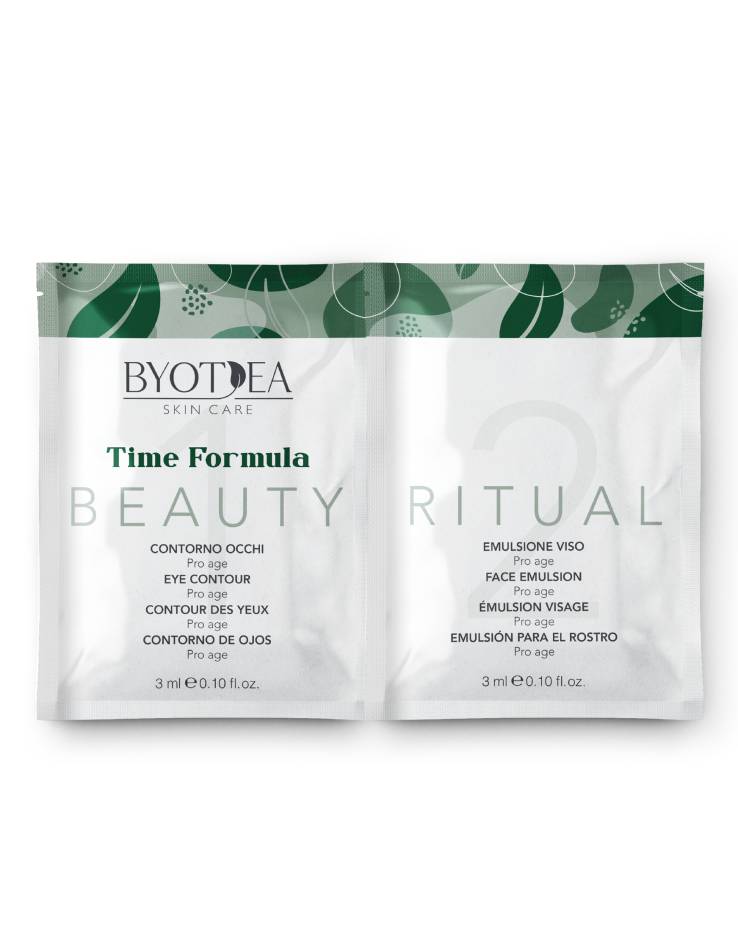 Byotea TIME FORMULA je nová veganská řada, která přináší pleti energii, ochranu a stimulaci. Řada, která dodává stresované pleti nový příval energie, ochrany a povzbuzení. Ideální pro pleť s prvními příznaky stárnutí, která je namáhaná endogenními a exogenními a environmentálními faktory. Složení na bázi složek schopných probudit produkci kolagenu a pomoci zabránit vzniku prvních známek stárnutí pleti a zároveň zajistit účinnou ochranu před UVA a UVB paprsky.
