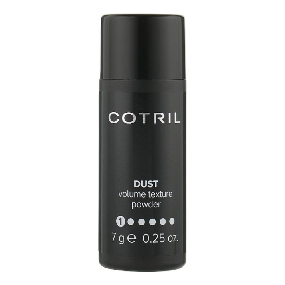 Volumizační pudr pro texturu Cotril DUST (Volume Texture Powder) dodává vlasům objem, matný efekt a přirozenou texturu. Nafoukněte objem vlasů do maximálních výšin. Stylingový pudr pro dokonalý objem Cotril Dust každý vlas obalí a vytvoří tak u kořínků maximální objem – a to ihned po aplikaci. Kromě objemu pomůže pudr vlasy také jemně zafixovat a dodá jim texturu, váš účes bude tedy vypadat perfektně i během náročného dne. Obsahuje křemičitany (oxid křemičitý), které pomáhají vytvořit z ochablých a nepoddajných vlasů vlasy s přirozeným objemem. Navíc obsahuje glycerin, který zajišťuje hydrataci vlasů. Tento teturozační pudr zachrání účes pokaždé, když jsou vlasy zplihlé a bez života. Stačí jej nanést do vlasů a jemně vmasírovat.