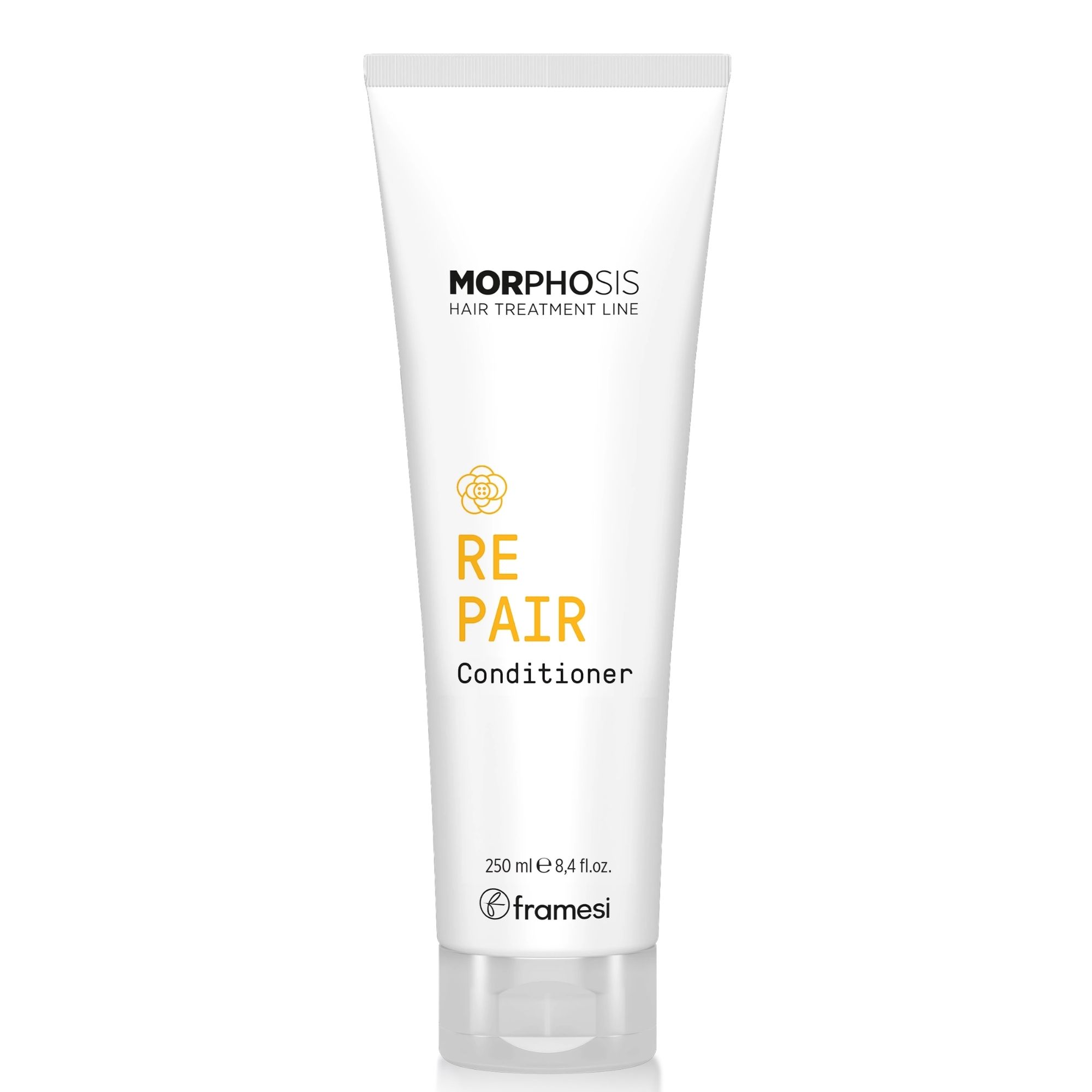 Framesi Morphosis REPAIR obnovující kondicionér (Framesi Morphosis Repair Conditioner) je profesionální regenerační péče vyvinutá specificky pro normální a jemné vlasy, které vykazují známky poškození, mdlob a nezdravého vzhledu. Tento odlehčený kondicionér hloubkově opravuje a oživuje vlasová vlákna, kterým poskytuje hmatatelné hydratační a regenerační výsledky zcela bez nežádoucího zatížení. Stoprocentně veganská receptura je obohacena o kaméliový olej, rostlinný mikrokeratin, fytoceramidy, glycerin a vitamin E. Tato silná synergie aktivně vyplňuje mezery ve vlasové kutikule, dodává kadeřím ztracenou pevnost a odolnost a zanechává je dokonale hebké a zářivé. Pravidelným používáním se markantně zvyšují ochranné a restrukturalizační účinky, čímž se efektivně předchází dalšímu poškození a lámání.