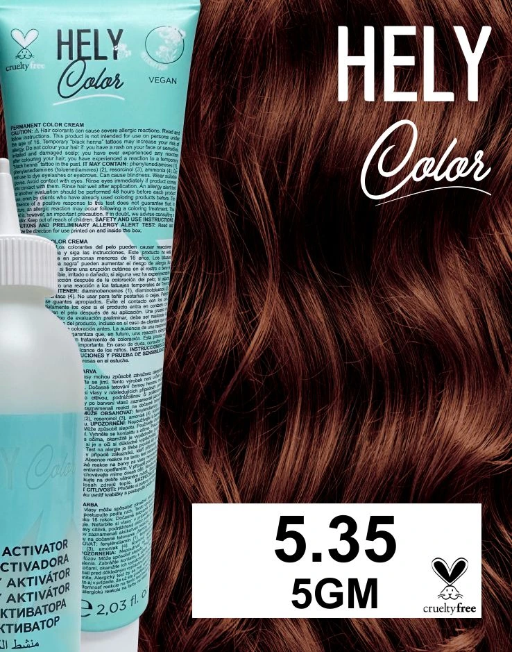 - Hely Color permanentní barva na vlasy - světle hnědá zlatá mahagonová (5.35/5GM) 60 ml