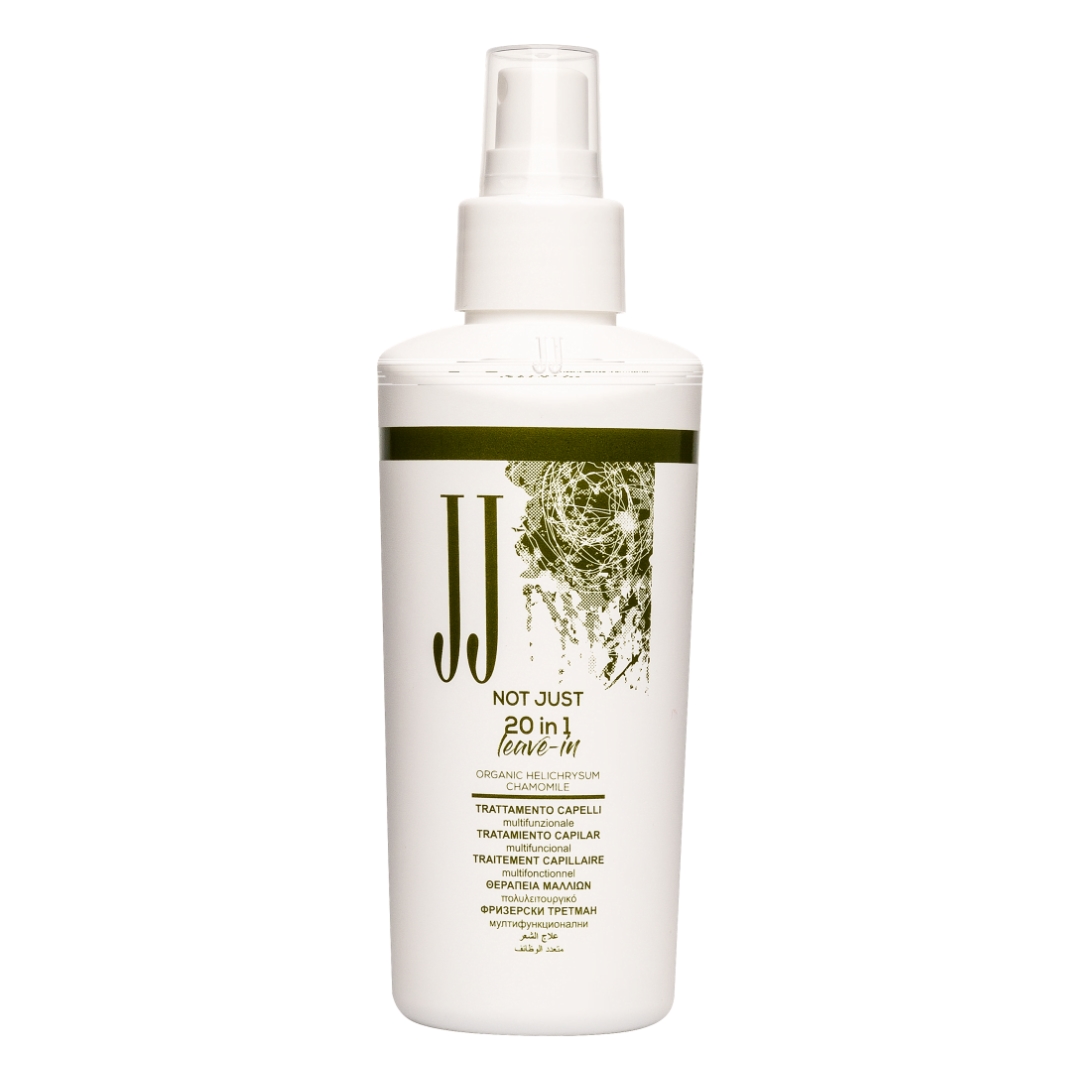 JJ Daily Not Just 20 bez-oplachový kondicionér pro časté použití (Leave-in/Organic Helichrysum/Chamomile) s více než 20 účinky v 1 je koncentrát účinných látek nezbytných pro zdraví a sílu vlasů. Obohacen o heřmánek a smil italský. Leave-in kondicionér s okamžitým účinkem revitalizuje vlasové vlákno, zvyšuje jeho pružnost a hydrataci. Vlasy získají svou původní krásu a jsou energičtější, zdravější a září vitalitou. Sprej je vhodný pro všechny typy vlasů a struktury vlasů a pro všechny typy stylingu.