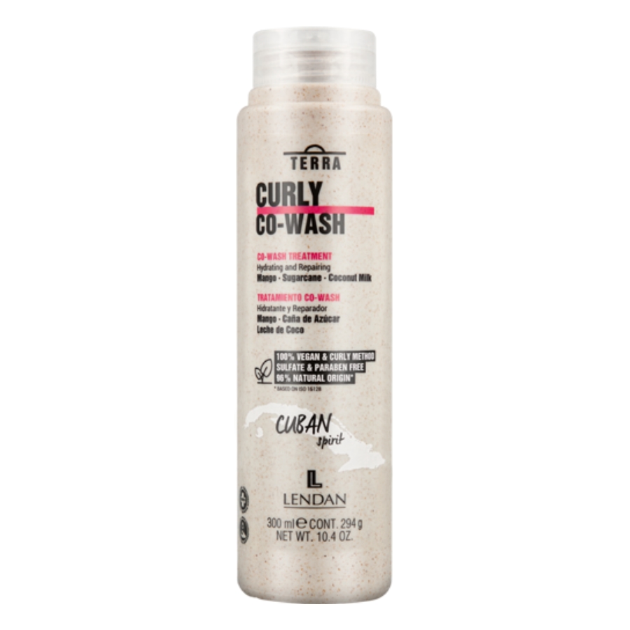 Lendan Terra Cuban Spirit Curly Co-Wash pro vlnité vlasy (Co-Wash Treatment/Hydrating and Repairing/Mango - Sugarcane - Coconut Milk) je šetrný čistící kondicionér pro jemné mytí a péči s maximálním respektem k vlnitým a kadeřavým vlasům. Šampónová péče ve formě kondicionéru obsahuje přírodní složky inspirované Karibikem pro maximální hydrataci loken bez zatížení. Ošetřující lázeň Co-Wash obsahuje mango, cukrovou třtinu a kokosové mléko. Kondicionér a šampónová lázeň v jednom je speciálně navržena pro vlnité vlasy, kudrnaté vlasy nebo afro styl a je 100% vhodná pro Curly Girl Method. Obsažené mango působí jako antioxidant a hydratační složka, která zabraňuje oxidaci a dehydrataci vlasů. Cukrová třtina poskytuje fixaci, definici a kokosové mléko vyživuje vlasy zevnitř a chrání je zvenčí. Šampónová lázeň obsahuje 96 % látek přírodního původu (dle ISO 16128). Péče Co-Wash Terra Cuban Spirit je veganská péče a neobsahuje parabeny, sulfáty, silikony, umělá barviva, mikroplasty ani další škodlivé látky. Čistící lázeň poskytuje vlnitým vlasům hydrataci a ochranu, zatímco respektuje přirozené oleje (ochrannou lipidickou bariéru) vlasů pro zdravé vlny a objem.